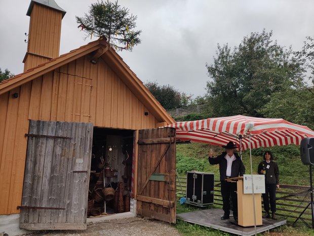 Heute möchte ich den Initiatoren der Tanslozierung danken – der Gemeinde und dem Museum, vertreten durch Bürgermeisterin Heike Klinkhammer und Museumsleiterin Katharina Wischer – mit der Unterstützung heimischer Firmen. Mein ganz besonderer Dank gilt Karl Frieß und Werner Bayer – ohne die beiden, die das Wissen und handwerkliches Können eingebracht haben und vor allem auch ihre Zeit, wäre die Translozierung nicht so reibungslos verlaufen. Ein Verein und auch ein Museum, ist jeweils nur so gut wie seine Unterstützer. Ganz herzlichen Dank!