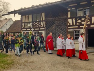 Am Palmsamstag, den 28.03.2026 ab 14 Uhr zeigen Simone, Petra und Brigitte, welche 7 immergrüne Pflanzen in den Palmen gehören und wie sie gebunden werden. Am Palmsonntag, den 29.03., werden die Palmen vor der Museumskapelle gesegnet und eine feierliche Prozession führt in die Kirche.